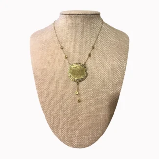 A stunning two-piece layered necklace set with a chunky gold-tone aesthetic.